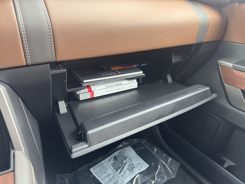 - Illuminated center console storage bin and glove box