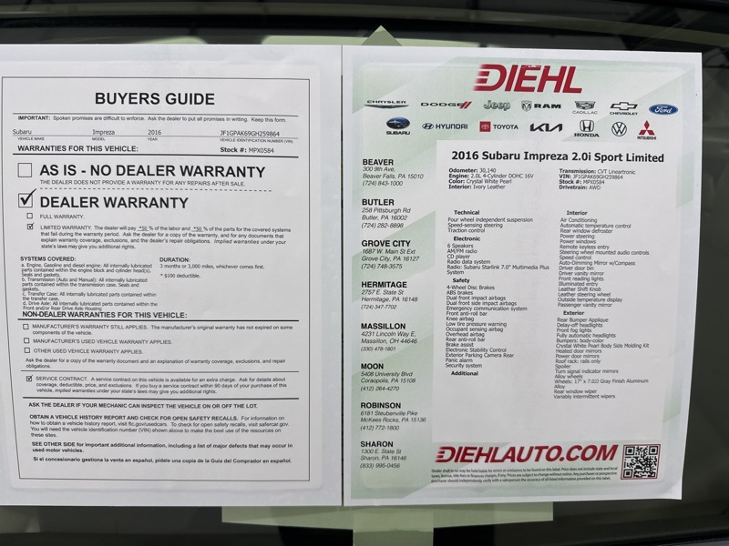Come see this Impreza for yourself at Diehl of Moon and take it for a drive. Vehicles this well balanced and easy to love do not tend to wait around very long, and this one is ready when you are.
