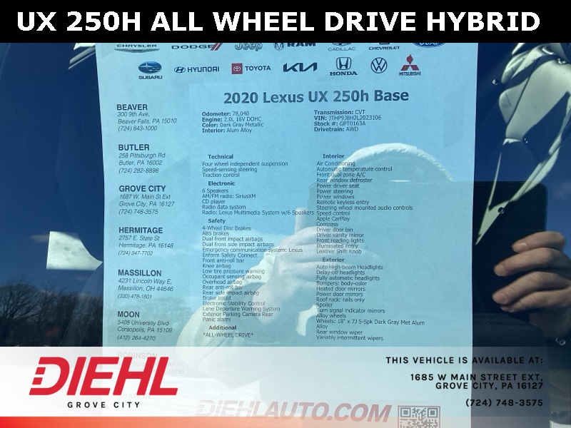 Dark Gray Metallic 2020 Lexus UX 250h Base 4D Sport Utility AWD 2.0L 16V DOHC CVT