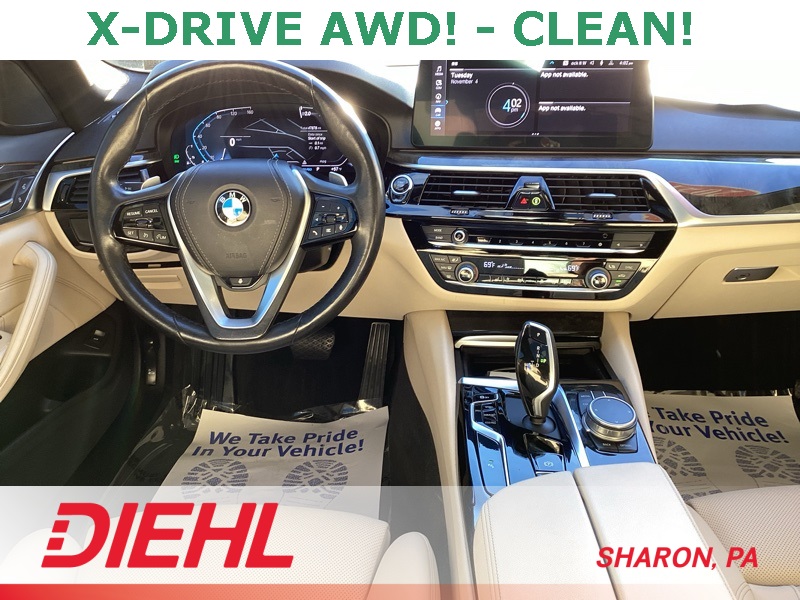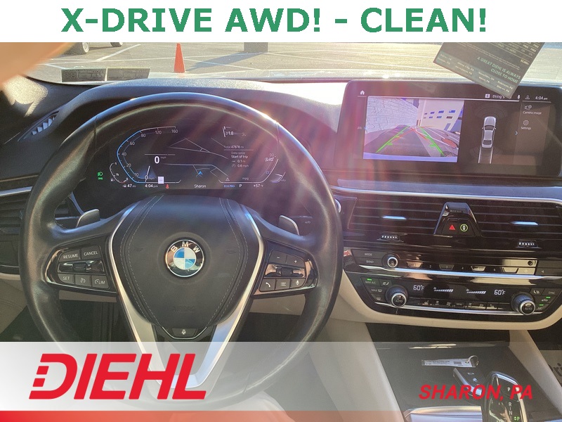 **HEATED SEATS**, **BLIND SPOT MONITOR**, **BACKUP CAMERA**, **SURROUND VIEW CAMERA**, **POWER DRIVERS SEAT**, **POWER PASSENGER SEAT**, **PREMIUM SOUND SYSTEM**, **LEATHER SEATS**, **APPLE CAR PLAY**, **ANDROID AUTO**, AWD, Canberra Beige Canberra Beige Perforated Sens, 12 Speakers, 4-Wheel Disc Brakes, ABS brakes, Air Conditioning, Alloy wheels, AM/FM radio: SiriusXM with 360L, Apple CarPlay & Android Auto Compatibility, Auto High-beam Headlights, Auto tilt-away steering wheel, Auto-dimming door mirrors, Auto-dimming Rear-View mirror, Automatic temperature control, BMW Assist eCall, BMW TeleServices, Brake assist, Bumpers: body-color, Connected Package Pro, ConnectedDrive Services, Convenience Package, Delay-off headlights, Driver door bin, Driver vanity mirror, Dual front impact airbags, Dual front side impact airbags, Electronic Stability Control, Emergency communication system: BMW Assist eCall, Enhanced USB & Bluetooth, Exterior Parking Camera Rear, Four wheel independent suspension, Front anti-roll bar, Front Bucket Seats, Front Center Armrest, Front dual zone A/C, Front reading lights, Fully automatic headlights, Garage door transmitter, Genuine wood console insert, Genuine wood dashboard insert, Genuine wood door panel insert, Heated door mirrors, Heated Front Seats, Heated Steering Wheel, Hi-Fi Sound System, Illuminated entry, Leather Shift Knob, Leather steering wheel, Live Cockpit Pro w/Navi, Low tire pressure warning, Lumbar Support, Memory seat, Navigation System, Occupant sensing airbag, Outside temperature display, Overhead airbag, Panic alarm, Passenger door bin, Passenger vanity mirror, Perforated Sensatec Upholstery, Power door mirrors, Power driver seat, Power Front Seats, Power moonroof, Power passenger seat, Power steering, Power Tailgate, Power windows, Radio data system, Radio: AM/FM Audio System, Rain sensing wipers, Rear anti-roll bar, Rear reading lights, Rear seat center armrest, Rear window defroster, Remote Engine Start, Remote keyless entry, Security system, SiriusXM w/360L, Speed control, Speed-sensing steering, Speed-Sensitive Wipers, Split folding rear seat, Sport Seats, Sport steering wheel, Steering wheel memory, Steering wheel mounted audio controls, Tachometer, Telescoping steering wheel, Tilt steering wheel, Traction control, Trip computer, Turn signal indicator mirrors, Variably intermittent wipers, Wheels: 18" x 8" Double-Spoke Burnished Orbit Grey, Wheels: 18" x 8" W-Spoke Reflex Silver, WiFi Hotspot. Alpine White 2021 BMW 5 Series 530i xDrive AWD 8-Speed Automatic Sport 2.0L 4-Cylinder