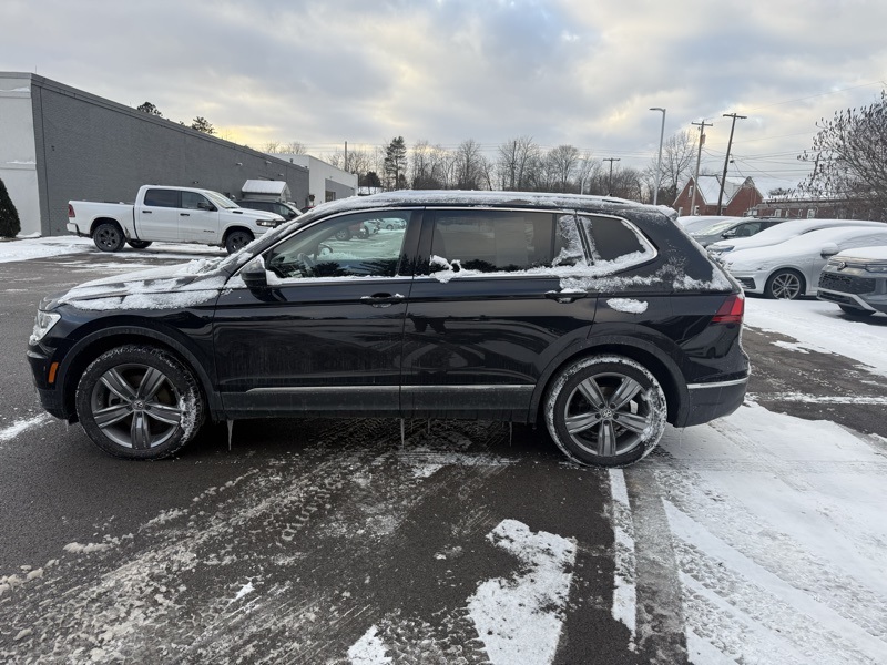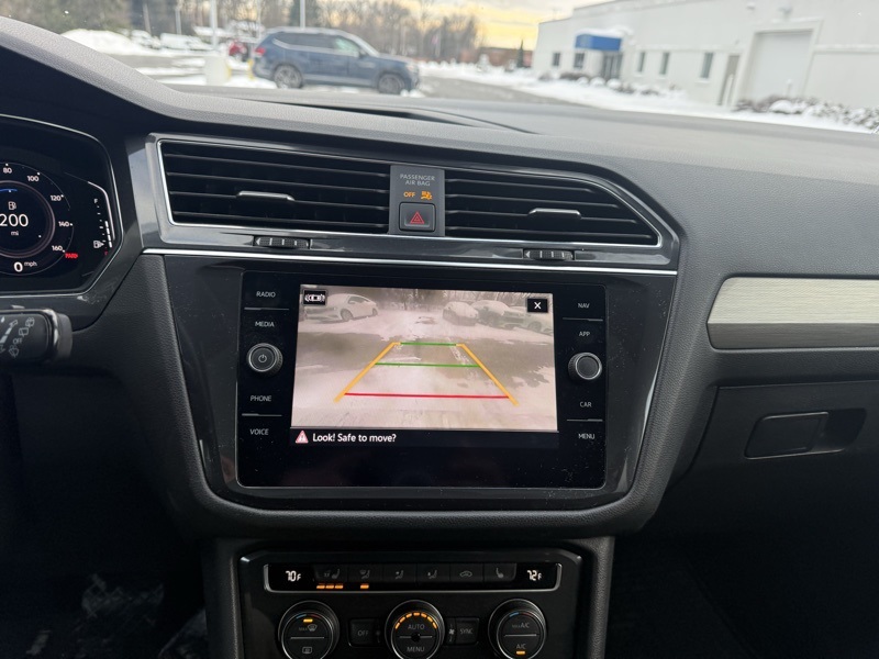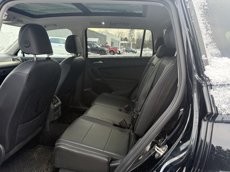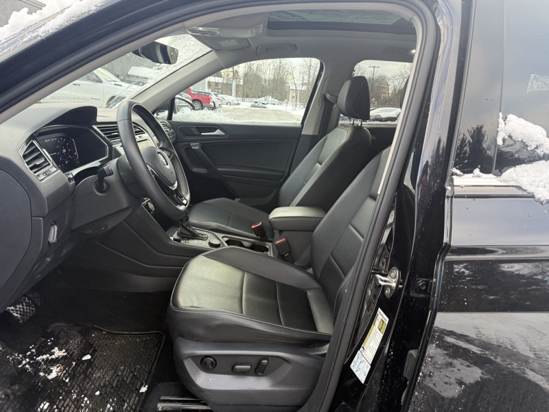**VW CERTIFIED**, **PANORAMIC MOONROOF**, **POWER LIFTGATE**, **FACTORY REMOTE START**, **FACTORY NAVIGATION**, **APPLE CARPLAY / ANDROID AUTO**, **19" GRAY ALLOY WHEELS**, **AUTO HEADLIGHTS**, **CLEAN CARFAX**, AWD, 3.33 Axle Ratio, 4-Wheel Disc Brakes, 4-Wheel Independent Suspension, 6 Speakers, ABS brakes, Active Cruise Control, Air Conditioning, Alloy wheels, AM/FM radio: SiriusXM with 360L, Auto-dimming Rear-View mirror, Automatic temperature control, Brake assist, Bumpers: body-color, Compass, Delay-off headlights, Driver door bin, Driver vanity mirror, Dual front impact airbags, Dual front side impact airbags, Electronic Stability Control, Emergency communication system: VW Car-Net services (capabilities require enrollment or subscription), Exterior Parking Camera Rear, Forward collision: FCW w/Autonomous Emergency Braking mitigation, Four wheel independent suspension, Front anti-roll bar, Front Bucket Seats, Front Center Armrest, Front dual zone A/C, Front fog lights, Front reading lights, Fully automatic headlights, Heated door mirrors, Heated Front Comfort Seats, Heated front seats, Heated steering wheel, Illuminated entry, Leather Shift Knob, Low tire pressure warning, Navigation System, Navigation system: VW Car-Net Guide & Inform, Occupant sensing airbag, Outside temperature display, Overhead airbag, Overhead console, Panic alarm, Passenger door bin, Passenger vanity mirror, Perforated V-Tex Leatherette Seating Surfaces, Power driver seat, Power Liftgate, Power moonroof, Power steering, Power windows, Radio data system, Radio: MIB3 Discover Media AM/FM/HD, Rain sensing wipers, Rear anti-roll bar, Rear reading lights, Rear Roof-Edge Spoiler, Rear seat center armrest, Rear window defroster, Rear window wiper, Remote keyless entry, Roof rack: rails only, Security system, Speed control, Speed-sensing steering, Split folding rear seat, Spoiler, Steering wheel mounted audio controls, Tachometer, Telescoping steering wheel, Tilt steering wheel, Traction control, Trip computer, Turn signal indicator mirrors, Variably intermittent wipers, Wheels: 19" 5-Spoke Gray Alloy. Clean CARFAX. Deep Black Pearl 2021 Volkswagen Tiguan 2.0T SEL AWD 8-Speed Automatic with Tiptronic 2.0L TSI DOHC