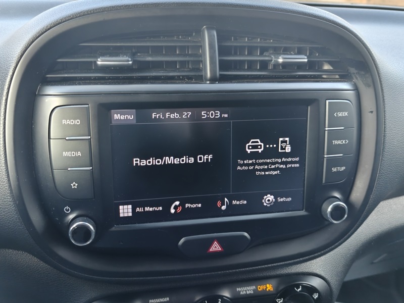**GAS SAVER!!, **BLUETOOTH**, **BACKUP CAMERA**, **ANDROID AUTO**, **APPLE CARPLAY*, **GAS SAVER**, Soul LX, Cherry Black, Black Cloth, 16" x 6.5" Alloy Wheels, 4-Wheel Disc Brakes, ABS brakes, Apple CarPlay & Android Auto, Delay-off headlights, Exterior Parking Camera Rear, Fully automatic headlights, Low tire pressure warning, Power steering, Power windows, Steering wheel mounted audio controls, Tilt steering wheel, Trip computer, Variably intermittent wipers.