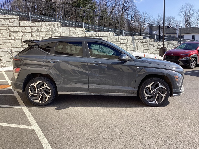 **CERTIFIED PRE OWNED**, 3.510 Axle Ratio, 4-Wheel Disc Brakes, 8 Speakers, ABS brakes, Air Conditioning, Alloy wheels, AM/FM radio: SiriusXM, Apple CarPlay & Android Auto, Auto High-beam Headlights, Auto-dimming Rear-View mirror, Automatic temperature control, Brake assist, Bumpers: body-color, Cargo Net, Cargo Tray, Carpeted Floor Mats, Column-Mounted Shift-By-Wire, Delay-off headlights, Driver door bin, Driver vanity mirror, Dual front impact airbags, Dual front side impact airbags, Electronic Stability Control, Emergency communication system: Bluelink+, Exterior Parking Camera Rear, First Aid Kit, Four wheel independent suspension, Front anti-roll bar, Front Bucket Seats, Front Center Armrest, Front dual zone A/C, Front reading lights, Fully automatic headlights, Heated door mirrors, Heated front seats, Heated Front Sport Bucket Seats, Illuminated entry, Leather Shift Knob, Leather steering wheel, Low tire pressure warning, N-Line Alcantara Sport Combination Seat Trim, Navigation System, Occupant sensing airbag, Option Group 01, Outside temperature display, Overhead airbag, Panic alarm, Passenger door bin, Passenger vanity mirror, Power door mirrors, Power driver seat, Power moonroof, Power steering, Power windows, Radio: AM/FM/HD Radio/SiriusXM Audio System, Rear anti-roll bar, Rear seat center armrest, Rear window defroster, Rear window wiper, Remote keyless entry, Security system, Speed control, Speed-sensing steering, Split folding rear seat, Spoiler, Steering wheel mounted audio controls, Tachometer, Telescoping steering wheel, Tilt steering wheel, Traction control, Trip computer, Turn signal indicator mirrors, Variably intermittent wipers, Wheel Locks, Wheels: 19" x 7.5J Metallic Alloy. Certified. Ecotronic Gray Pearl 2024 Hyundai Kona N Line AWD 8-Speed Automatic I4