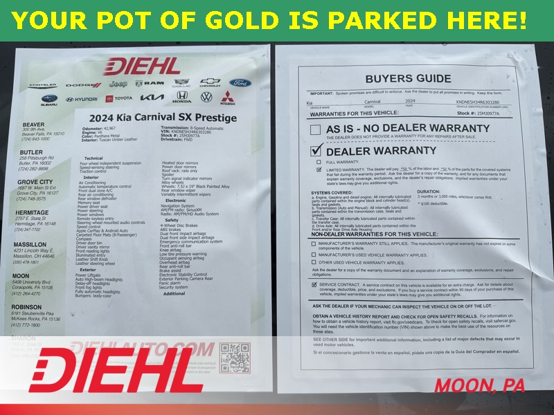 This Carnival is Diversified Certified, giving you added peace of mind with a 3-month or 3,000-mile Extended Care Limited Warranty, a comprehensive 125-point inspection, 24-hour roadside assistance, and a vehicle history report. Its a smart way to enjoy luxury, space, and confidence without the new-car price tag.