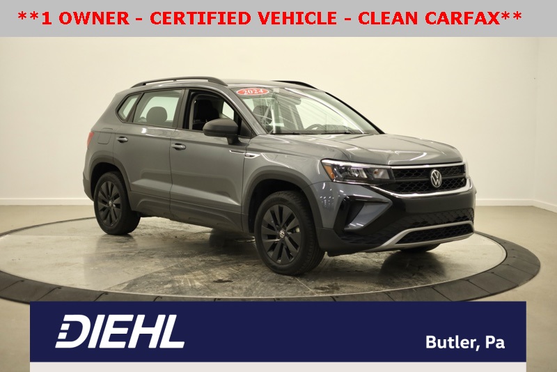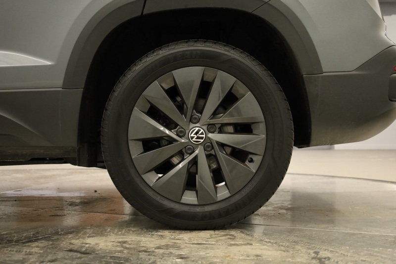 **BLUETOOTH HANDS FREE PHONE**, **BACK-UP CAMERA**, **CLEAN CARFAX ONE OWNER**, **APPLE CARPLAY / ANDROID AUTO**, **REMOTE KEYLESS ENTRY**, **17" ALLOY WHEELS**, **AUTO HIGH BEAMS**, 3.23 Axle Ratio, 4-Wheel Disc Brakes, 6 Speakers, ABS brakes, Active Blind Spot Monitor, Air Conditioning, Alloy wheels, AM/FM radio, Auto High-beam Headlights, Brake assist, Bumpers: body-color, Cloth Seating Surfaces, Compass, Delay-off headlights, Driver door bin, Driver vanity mirror, Dual front impact airbags, Dual front side impact airbags, Electronic Stability Control, Emergency communication system: VW Car-Net Safe & Secure 5-year, Exterior Parking Camera Rear, Front anti-roll bar, Front Bucket Seats, Front Center Armrest, Front reading lights, Front Strut Rear Torsion Beam Suspension, Front wheel independent suspension, Fully automatic headlights, Heated steering wheel, Illuminated entry, Leather Shift Knob, Low tire pressure warning, Occupant sensing airbag, Outside temperature display, Overhead airbag, Overhead console, Panic alarm, Passenger door bin, Passenger vanity mirror, Power door mirrors, Power steering, Power windows, Radio data system, Radio: Composition Color AM/FM, Rain sensing wipers, Rear anti-roll bar, Rear seat center armrest, Rear window defroster, Rear window wiper, Remote keyless entry, Roof rack: rails only, Speed control, Speed-sensing steering, Split folding rear seat, Spoiler, Steering wheel mounted audio controls, Tachometer, Telescoping steering wheel, Tilt steering wheel, Traction control, Trip computer, Variably intermittent wipers, Wheels: 17" Silver Painted Alloy. CARFAX One-Owner. Clean CARFAX. Pure Gray 2024 Volkswagen Taos 1.5T S FWD 8-Speed Automatic with Tiptronic 1.5L I4 Turbocharged DOHC 16V LEV3-SULEV30 158hp