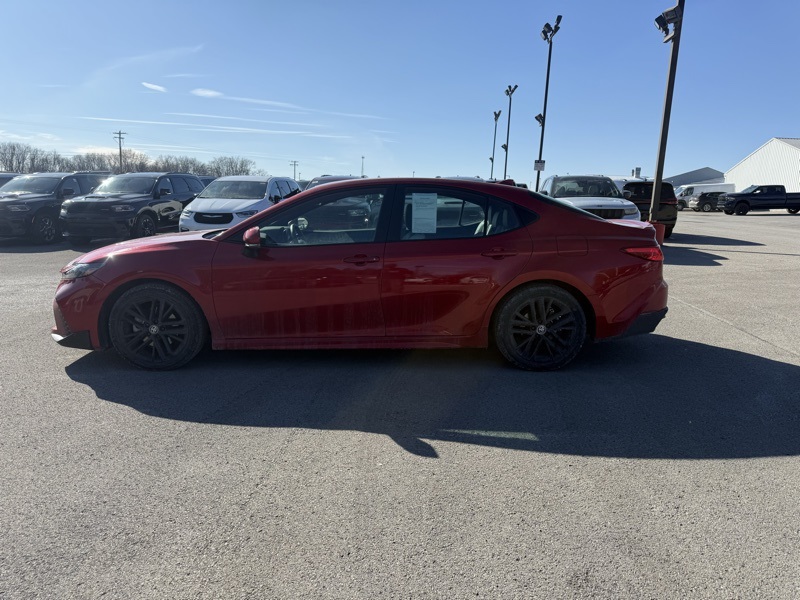 **TOYOTA CERTIFIED**, **CLEAN CARFAX ONE OWNER**, **PRE COLLISION SYSTEM**, **LANE KEEP ASSIST**, **ADAPTIVE CRUISE CONTROL**, **AUTO HIGH BEAMS**, **BLIND SPOT DETECTION**, **KEYLESS ENTRY**, **8" TOUCHSCREEN RADIO**, **APPLE CARPLAY / ANDROID AUTO**, **POWER DRIVER SEAT**, **WIRELESS PHONE CHARGER**, **AUTO DIMMING REARVIEW MIRROR**, **18" BLACK ALLOY WHEEL**, 2.5L 4-Cylinder 16V DOHC, Black w/SofTex and Fabric Seat Trim, 4-Wheel Disc Brakes, ABS brakes, Active Cruise Control, Alloy wheels, Auto-Dimming Rearview Mirror w/HomeLink, Brake assist, Convenience Package, Dual front impact airbags, Dual front side impact airbags, Electronic Stability Control, Emergency communication system: Safety Connect (up to 10-year trial subscription), Front anti-roll bar, Front dual zone A/C, Heated door mirrors, Illuminated entry, Knee airbag, Low tire pressure warning, Occupant sensing airbag, Overhead airbag, Rear anti-roll bar, Rear side impact airbag, Remote keyless entry, Smart Key System, Traction control. Recent Arrival! CARFAX One-Owner. Clean CARFAX. Supersonic Red 2025 Toyota Camry SE FWD eCVT 2.5L 4-Cylinder 16V DOHC